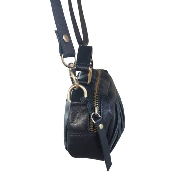 Boheemihenkinen nahkatilaihme, joka avautuu hyvin. Naisellinen muoto, vekitetty etuosa ja säädettävä hihna – olalle, crossbodyksi tai lantiolle, juuri niinkuin haluat, antaa täydellisen vapauden kantotapaan ja tekee laukusta todellisen monikäyttöihmeen.