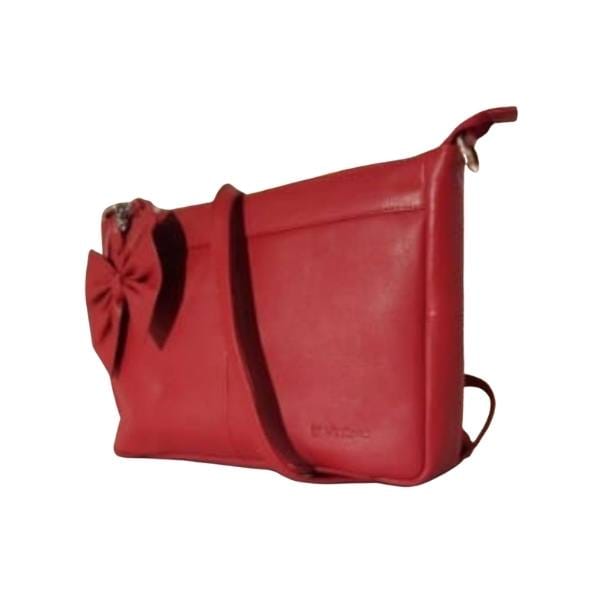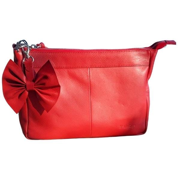 Pehmeänahkainen laukku, jossa irroitettava rusettikoriste tuo ripauksen leikkisyyttä.